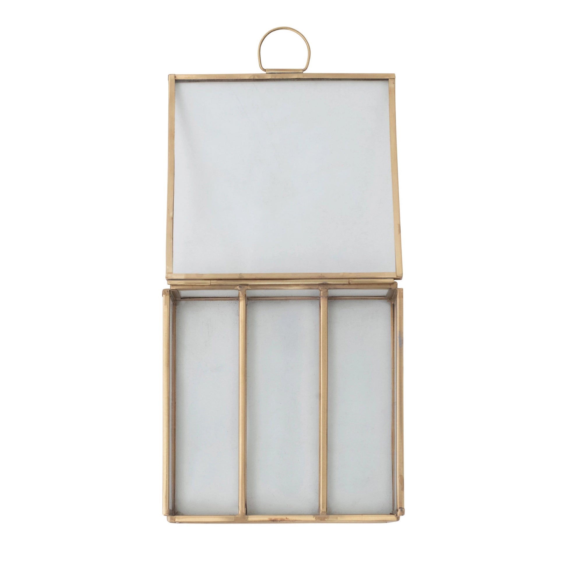 Add a touch of elegance to your dressing table with our Square Metal & Glass Box! This little glass box features three compartments, perfect for storing your precious jewelry or other trinkets. Keep your belongings organized and easily accessible with this stylish and functional box.