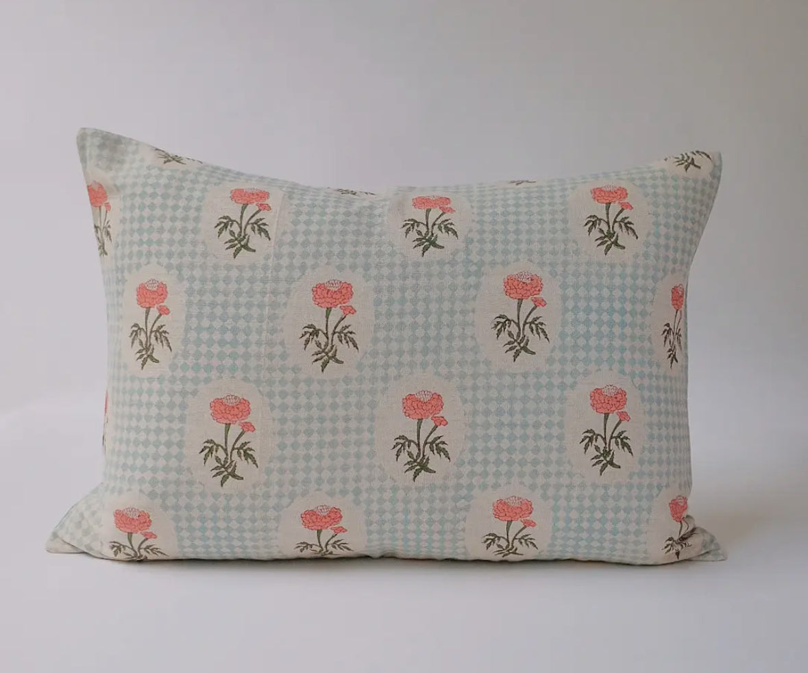 Linen Hand Block-Printed Pillowcase in Sky Blue