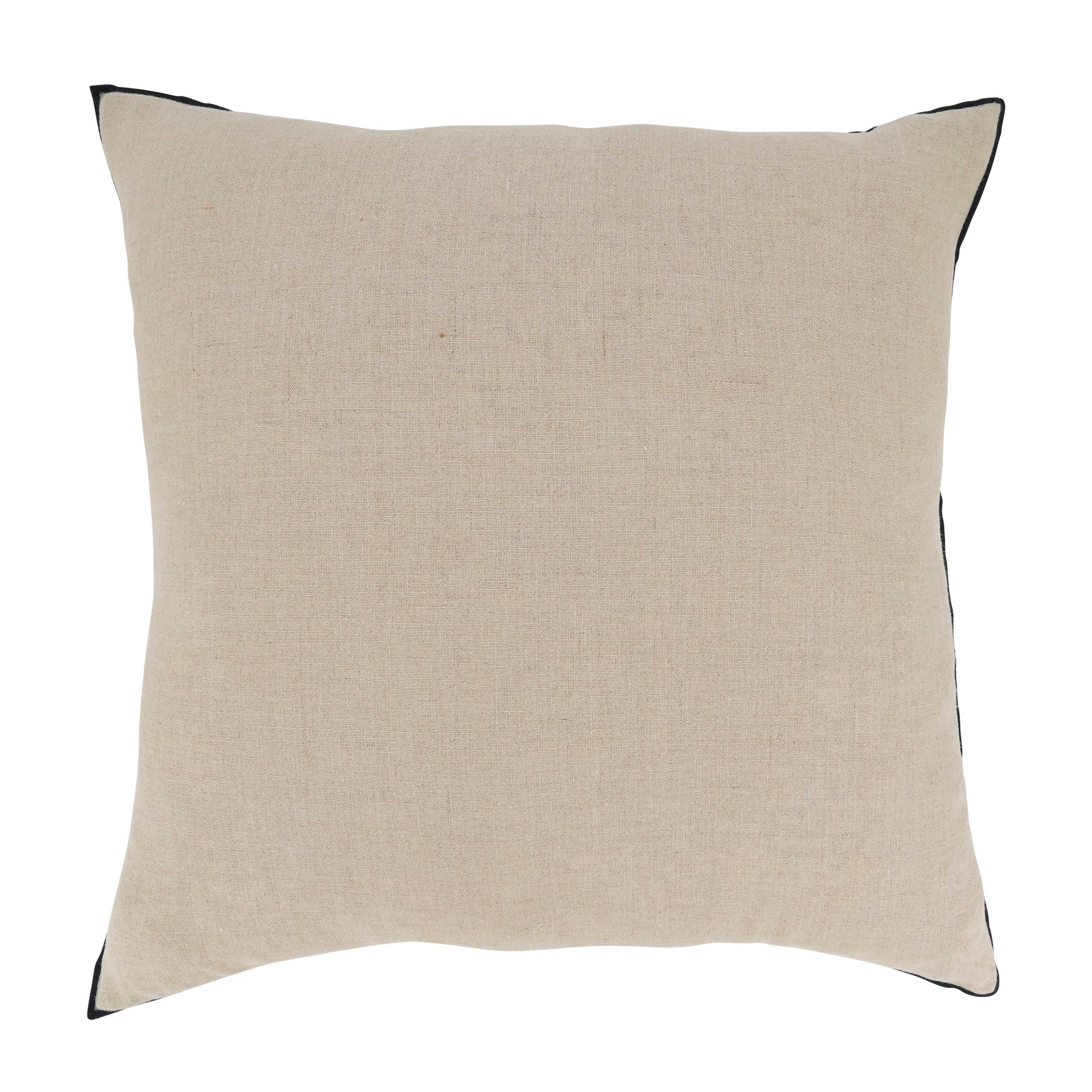 Linen Stonewashed Stitched Border Throw Pillow – Black/Natural, 20', Down Filled
