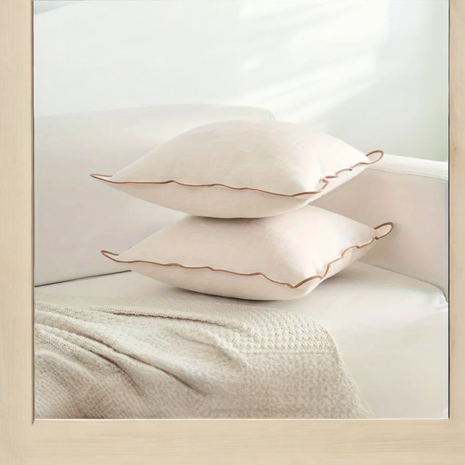 Enhance your home decor with our 22' Scallop Edge Pillow. This elegant pillow features a colorful and cute design made with a luxurious blend of 60% linen and premium cotton.